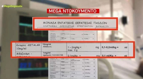 Σύμφωνα με το έγγραφο που δημοσίευσε στο MEGA ο αστυνομικός συντάκτης Βασίλης Λαμπρόπουλος, η χορήγηση της κεταμίνης όχι μόνο δεν ήταν κάτι μυστικό, αλλά αναγραφόταν πάνω στο κρεβάτι του κοριτσιού και η Ρούλα Πισπιρίγκου είχε πλήρη επίγνωση της ουσίας.