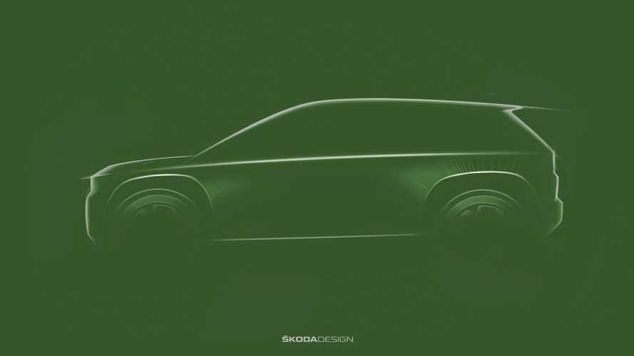 To πρακτικότερο μέλος της μελλοντικής ηλεκτρικής τριπλέτας θα είναι το μοντέλο της Skoda το οποίο θα υιοθετήσει μια πιο τετραγωνισμένη σχεδίαση προς όφελος της επιπλέον χρηστικότητας που είναι συνυφασμένη με τις συνήθειες και τις αξίες της τσεχικής φίρμας. Μια προσεκτική παρατήρηση στο σκίτσο της Skoda αποκαλύπτει επίσης ορισμένα περιπετειώδη στοιχεία όπως οι διογκωμένοι θόλοι και η υποψία προστατευτικών κάτι που συνηγορεί σε μια crossover έμπνευσης έκδοσης παραγωγής.