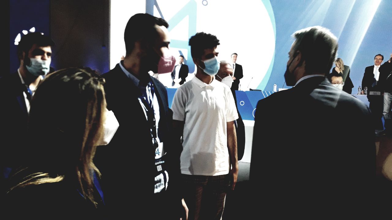 Στη δεύτερη μέρα του συνεδρίου ο Κυριάκος Μητσοτάκης χαιρέτησε τους νεολαίους του κόμματος, ωστόσο ένας από αυτούς του τράβηξε την προσοχή