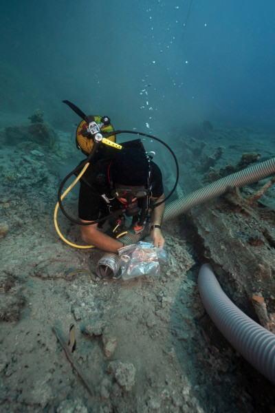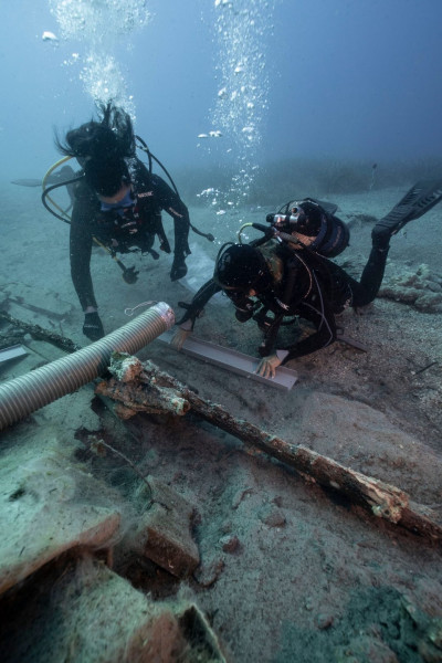 Κατά την πρόσφατη υποβρύχια ανασκαφική έρευνα πραγματοποιήθηκαν δύο ανασκαφικές τομές κατά μήκος του σωζόμενου σκαριού του πλοίου.