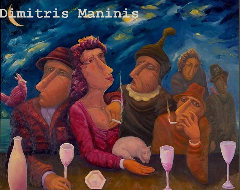“…Άκρως εξατομικευμένη, ισχυρή, επιμονή και γοητευτική στην αφήγηση της η ζωγραφική του Δημήτρη Μανίνη. Ήταν μια από τις πρώτες μου κριτικές που δημοσίευσα πριν 45 χρόνια, καθώς με συνεπήρε ο συμβολισμός και η μυστική ζωή των μορφών στα έργα του.