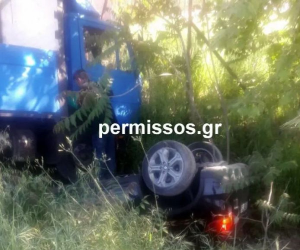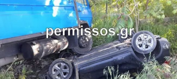 Το αυτοκίνητο αναποδογύρισε και καρφώθηκε κυριολεκτικά κάτω από το φορτηγό.