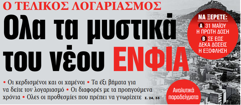 Στα «ΝΕΑ» της Τετάρτης: Ολα τα μυστικά του νέου ΕΝΦΙΑ
