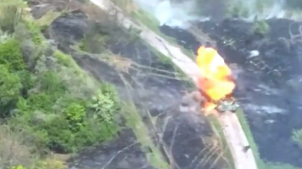 Το περιστατικό καταγράφηκε από Ουκρανικό drone που επιτηρούσε την περιοχή στο Χάρκοβο όταν ένα κομβόι από ρωσικά άρματα μάχης Τ-90Μ πλησίασαν από έναν δρόμο γεμάτο δέντρα.