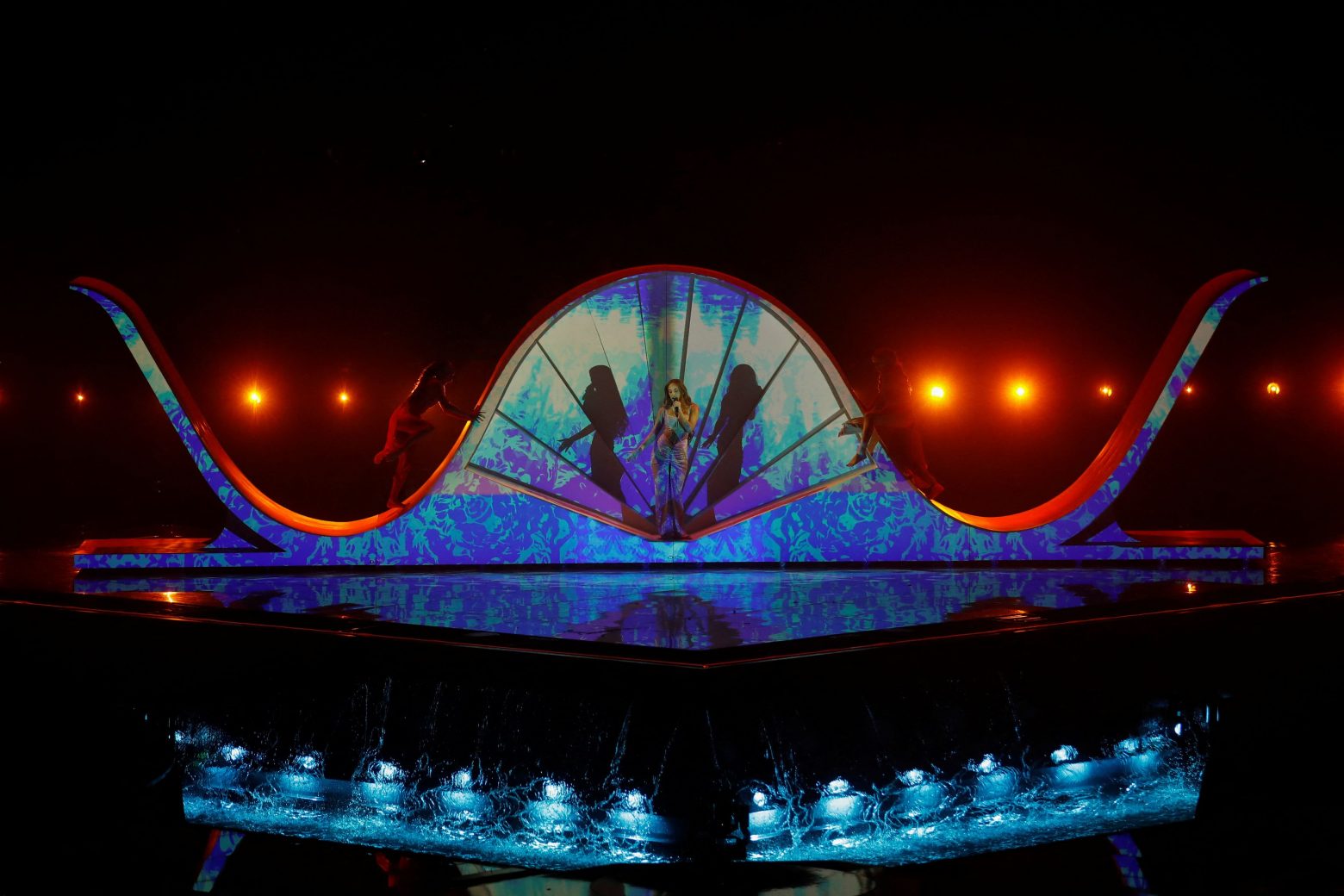 Στην εμφάνισή της βλέπουμε μία τεράστια κατασκευή σαν κοχύλι επάνω στο οποίο βρίσκονται οι χορεύτριες και ταυτόχρονα προβάλλονται γραφικά.