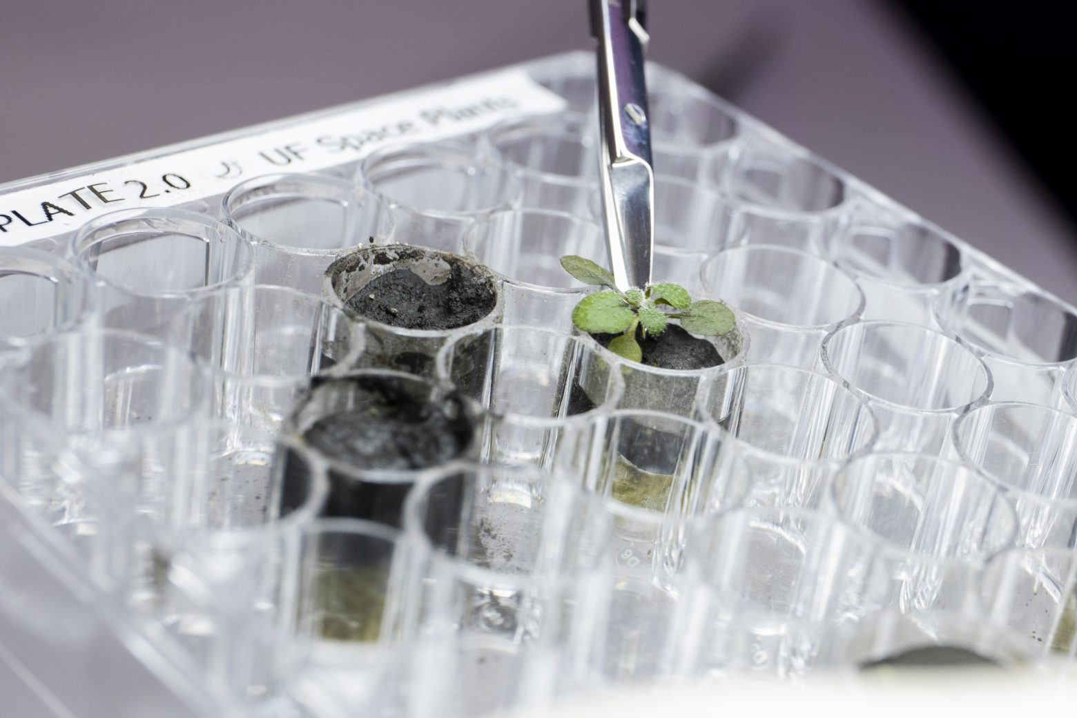 Τα φυτά σε σεληνιακό έδαφος, δεξιά, ήταν πολύ μικρότερα από τα φυτά σε γήινο χώμα (Tyler Jones, UF/IFAS)