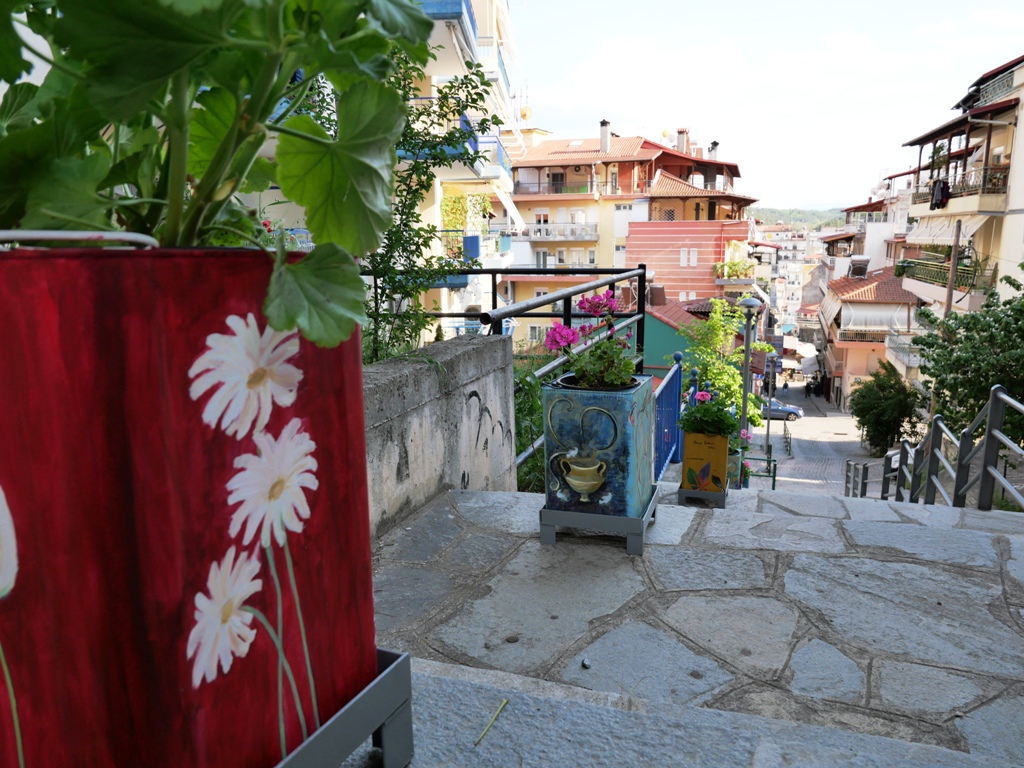 Χρησιμοποιώντας τενεκέδες τυριού, όπως συνηθίζονταν στο παρελθόν για τη διακόσμηση των αυλών των σπιτιών, οι εθελοντές συνδύασαν πολύχρωμα λουλούδια με περίτεχνες ζωγραφιές, προσφέροντας όμορφες εικόνες στους διερχόμενους πολίτες.
