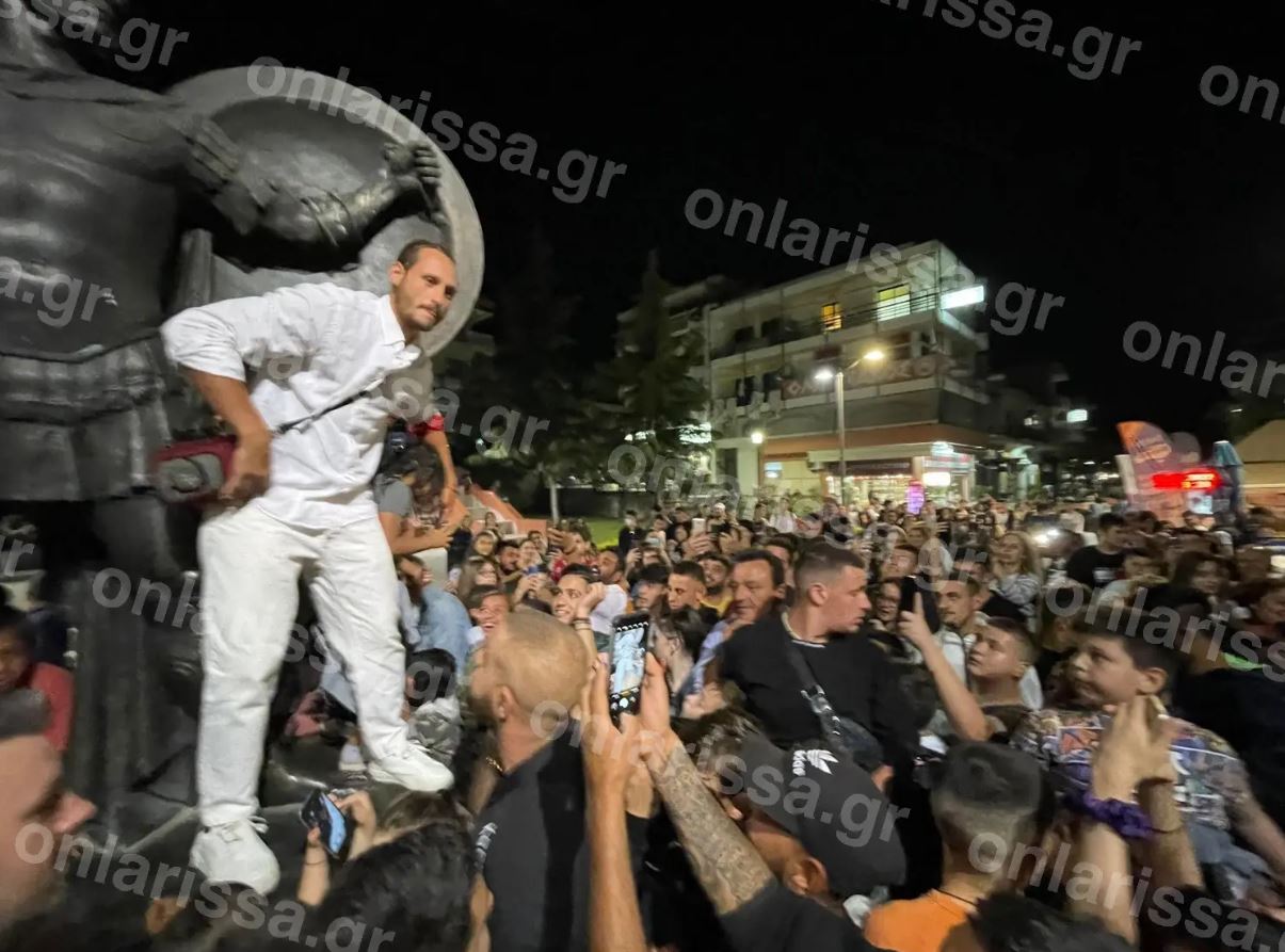 Σύμφωνα με το onlarissa μικροί και μεγάλοι συνωστίσθηκαν στα Φάρσαλα προκειμένου να βγάλουν μία φωτογραφία με τον δημοφιλή 27χρονο αγρότη που προ ημερών αποβλήθηκε από το παιχνίδι, λόγω μίας έντασης με άλλο παίκτη.