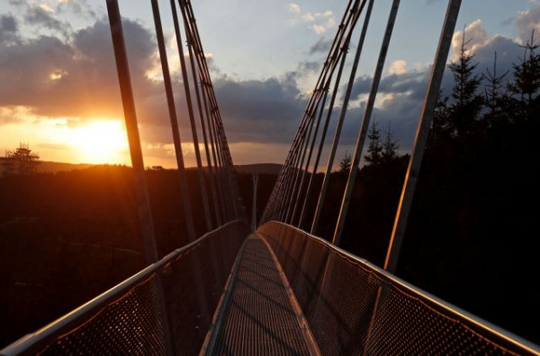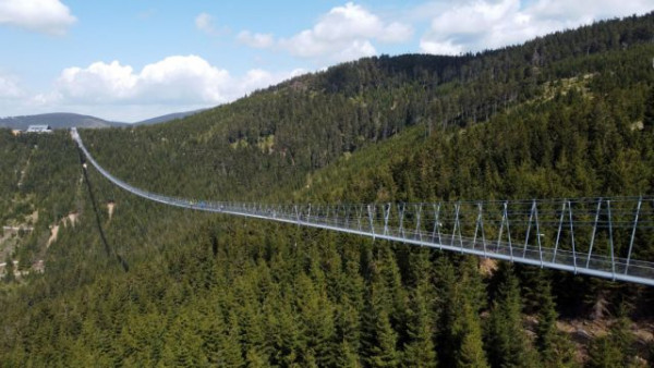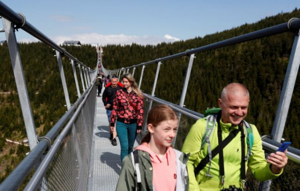 Φόβο και αδρεναλίνη στο «κόκκινο». Αυτά ένιωσαν, μεταξύ άλλων, οι πρώτοι τουρίστες που επισκέφθηκαν τη μεγαλύτερη κρεμαστή πεζογέφυρα στον κόσμο, στην Τσεχία.