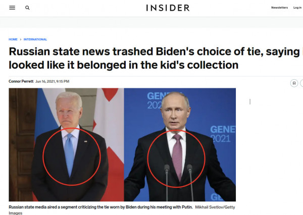 Η γραβάτα του Μπάιντεν έχει μπει στο στόχαστρο και των ρωσικών ΜΜΕ, όταν σε συνάντηση του πέρσι τον Ιούνιο με τον Βλαντιμίρ Πούτιν, επέλεξε μία light blue γραβάτα.