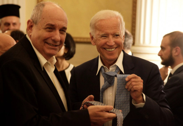 Ο Μπάιντεν μάλιστα δεν αρκέστηκε στην επιλογή μίας γραβάτας με ελληνικό χαρακτήρα, αλλά επέλεξε να φορέσει ένα αξεσουάρ που του είχε δωρίσει ένας Έλληνας.