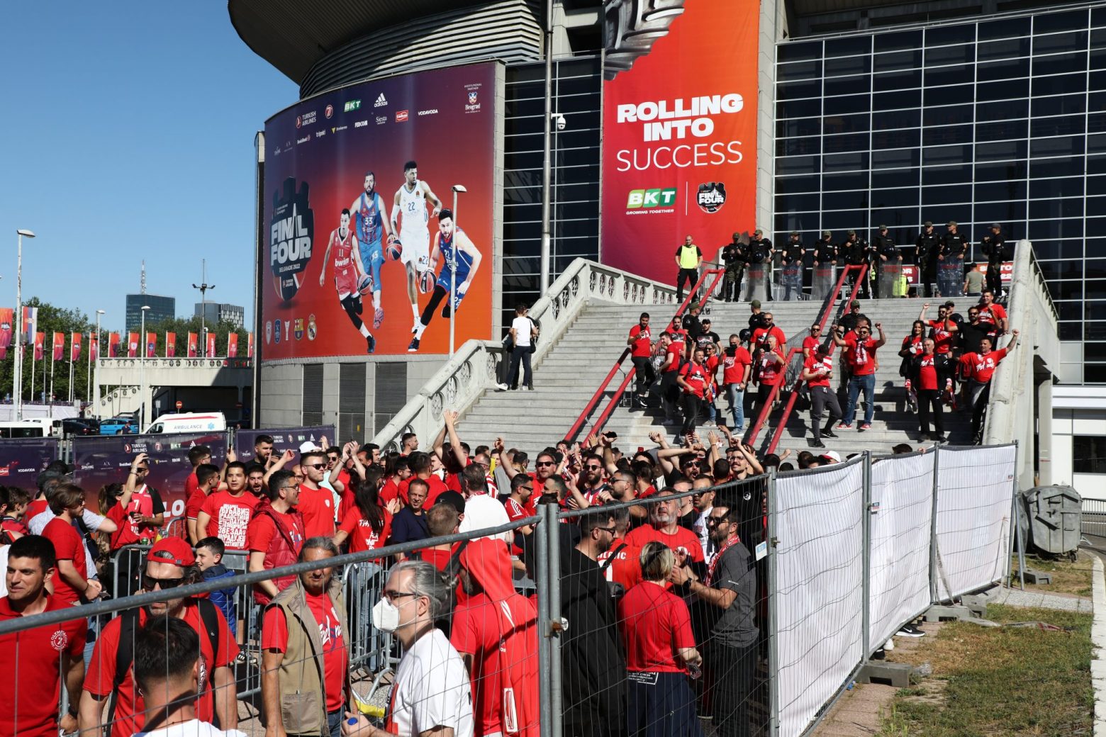 Το σκηνικό είναι μοναδικό, με το κόκκινο χρώμα να κυριαρχεί σε κάθε σημείο των εξεδρών, καθώς φίλαθλοι του Ολυμπιακού από κάθε γωνιά της Ελλάδας αλλά και του εξωτερικού, ταξίδεψαν στη σερβική πρωτεύουσα για να ενισχύσουν την αγαπημένη τους ομάδα.