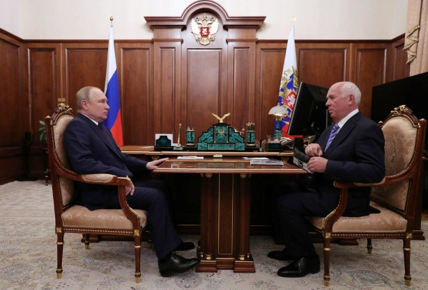 Ο Πούτιν, 69 ετών, κάθισε απέναντι από τον Τσεμέζοφ -σύμμαχο από την εποχή της KGB τη δεκαετία του 1980- εν μέσω φημών ότι υποβάλλεται σε θεραπεία για καρκίνο.