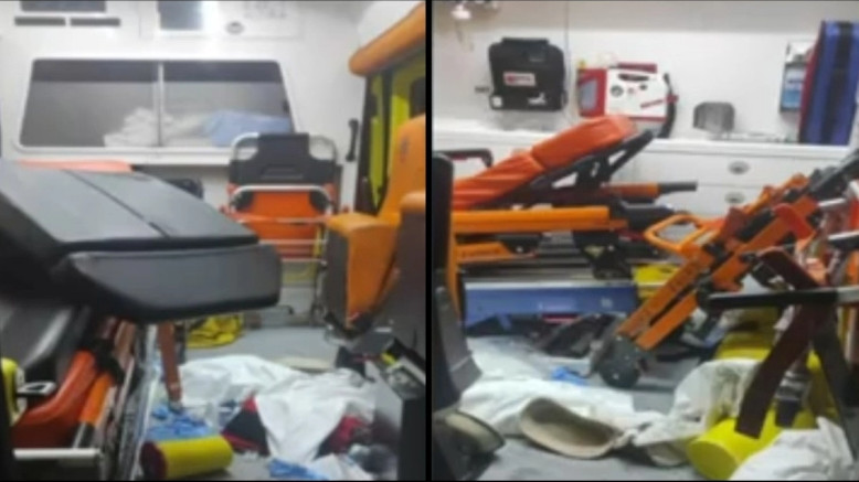 Έγινε επιθετική, άρχισε να πετάξει πράγματα και όπως μπορείτε να δείτε έκανε γυαλιά-καρφιά την καμπίνα του ασθενοφόρου.