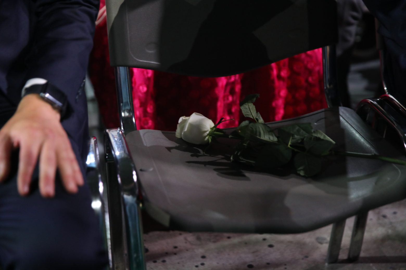Συγκίνησε η κίνηση του προέδρου του ΠΑΣΟΚ, Νίκου Ανδρουλάκη, να αφήσει ένα άσπρο τριαντάφυλλο στην κενή θέση που υπήρχε στην πρώτη σειρά των θέσεων, στη μνήμη της Φώφης Γεννηματά.