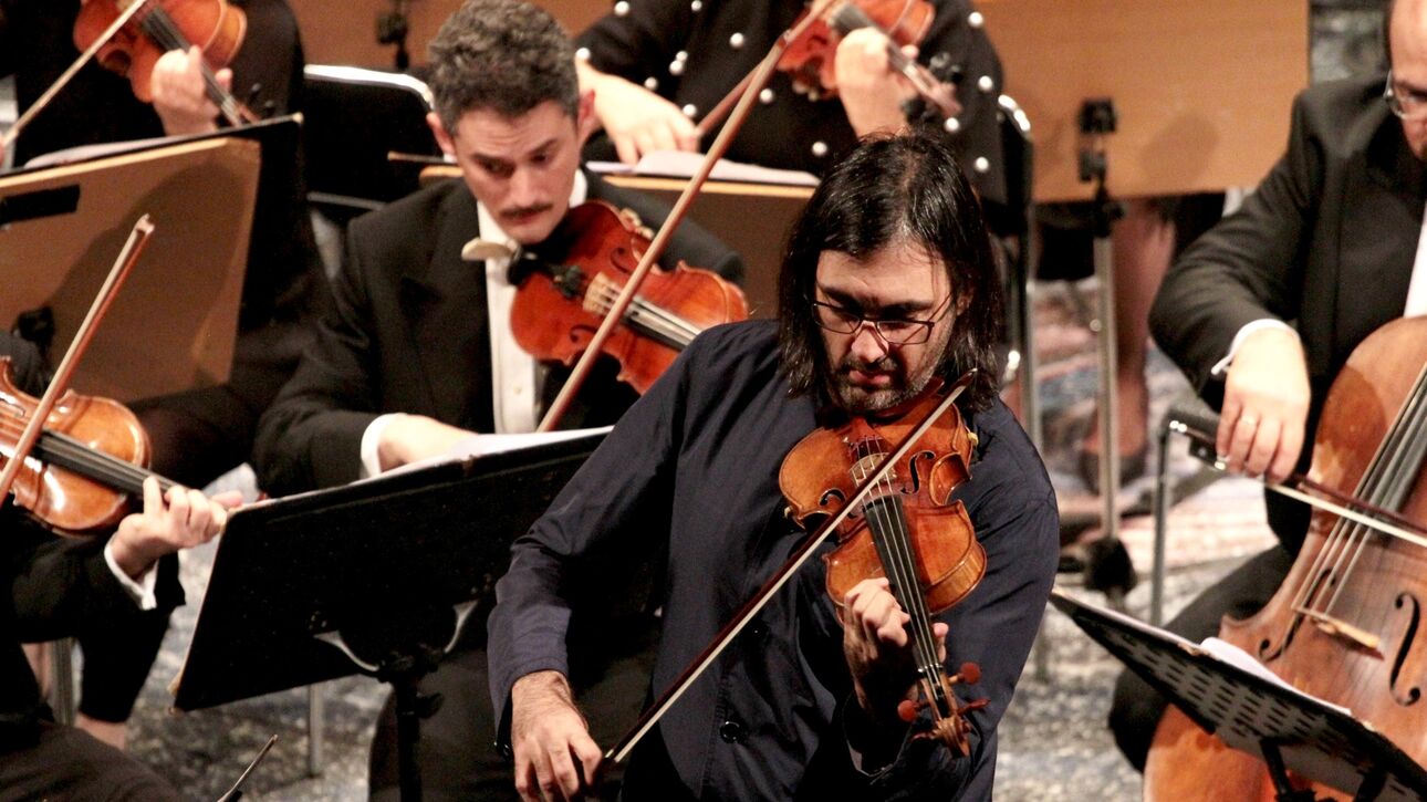 Ο διακεκριμένος Ουκρανός βιολονίστας, Ντμίτρο Ουντοβιτσένκο, συνδιαλέγεται με τον Λεωνίδα Καβάκο στο δεξιοτεχνικό Κοντσέρτο για 2 βιολιά και ορχήστρα σε ρε ελάσσονα του Γ.Σ. Μπαχ.
