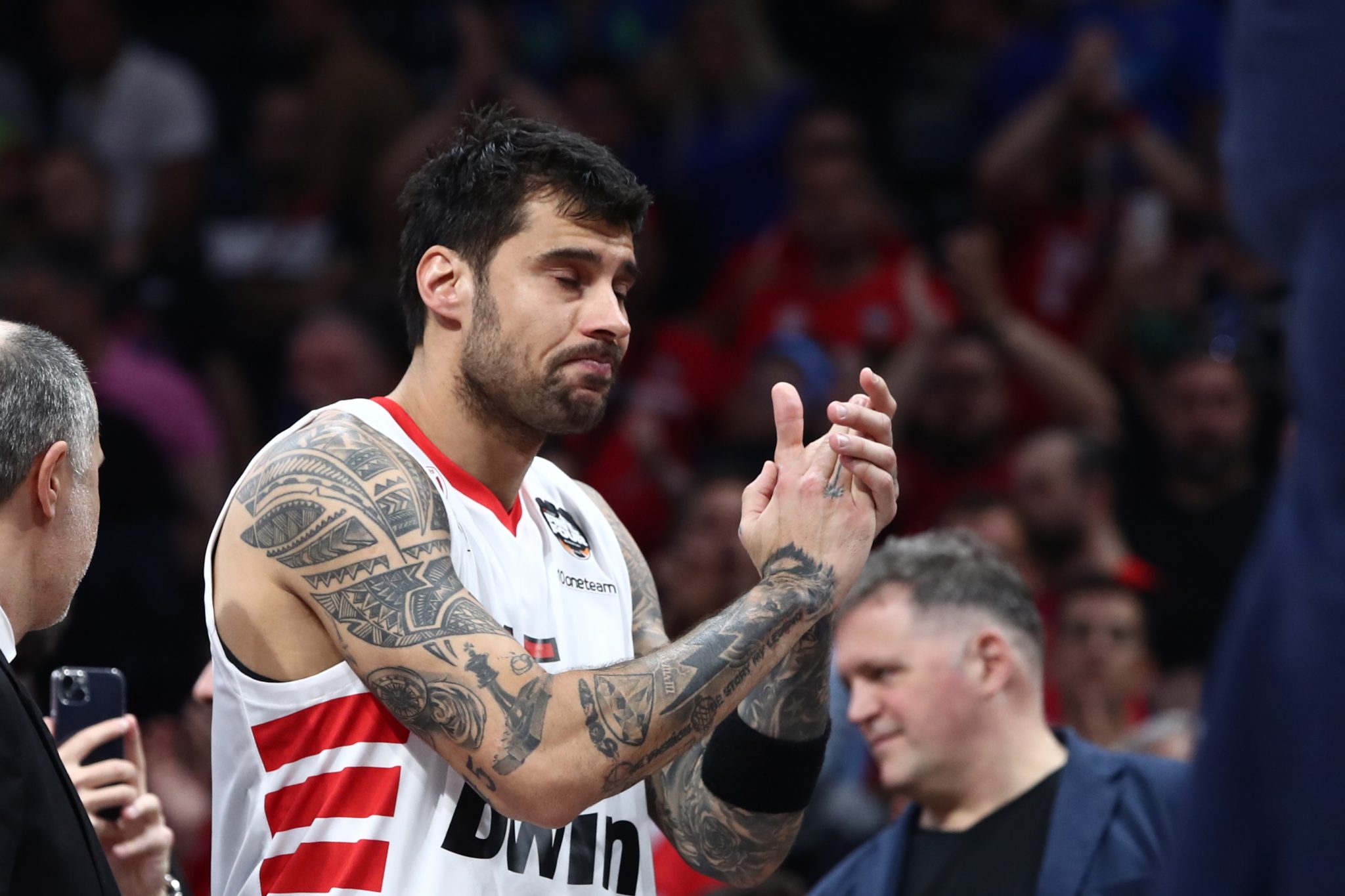 «Είναι αμοιβαίο. Τους ευχαριστώ πάρα πολύ. Είναι πάντα πολύ όμορφο. Παρά το γεγονός ότι είμαι 37 στα 38, κάθε φορά που ακούω ένα σύνθημα ντρέπομαι λες και είμαι παιδάκι. Δεν μπορώ να το συνηθίσω», ανέφερε χαρακτηριστικά.