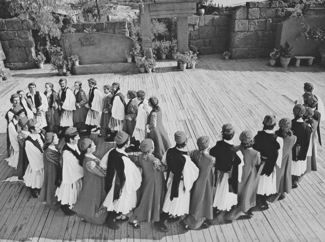 Το 1952 έτυχε να δει το 100μελές κρατικό φολκλορικό συγκρότημα της Γιουγκοσλαβίας που περιόδευε τις διάφορες χώρες προβάλλοντας τους δημοτικούς χορούς, τις μουσικές και τις φορεσιές της χώρας του.