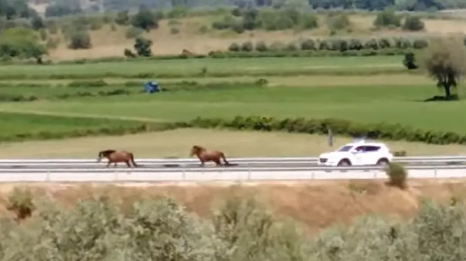 Δύο άλογα εμφανίστηκαν στην Ιόνια Οδό το μεσημέρι του περασμένου Σαββάτου, στο ύψος του κόμβο Αμφιλοχίας κινούμενα με κατεύθυνση προς Λουτρό και αντίστροφα.