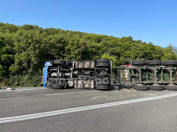 Κάτω από άγνωστες προς το παρόν συνθήκες, το βαρύ όχημα εξετράπη της πορείας του με αποτέλεσμα να ανατραπεί στο πρανές και να κλείσει το ρεύμα ανόδου.