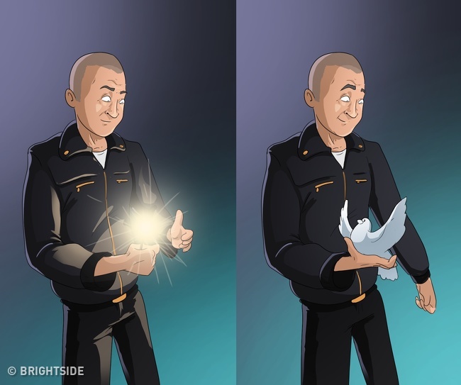 Το περίφημο τρικ με τον μάγο να βάζει φωτιά σ’ ένα φτερό κι απ’ τις φλόγες να βγαίνει ένα ολόκληρο περιστέρι, στην πραγματικότητα είναι το απλούστερο τρικ που υπάρχει.