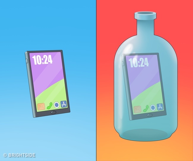 Ο «μάγος» δίνει ένα πλαστικό μπουκάλι σε κάποιον, του λέει να το τσεκάρει (για κοψίματα κτλ), κι όταν το θύμα πει «οκ, ένα σφραγισμένο μπουκάλι», ο «μάγος» πιέζει πάνω στο πλαστικό ένα κινητό κι εκείνο μπαίνει μέσα στο μπουκάλι.