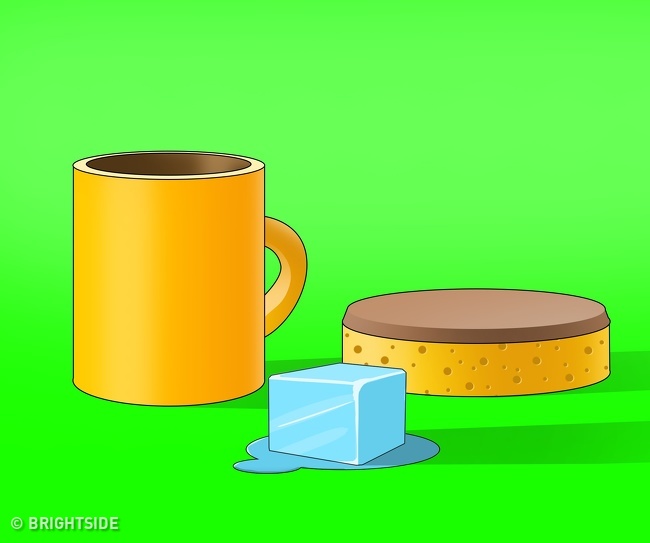 Ρίχνει νερό σε μια κούπα, τη γυρίζει ανάποδα ΣΧΕΔΟΝ ΑΜΕΣΩΣ και τσουπ! Παγάκι. Πώς; Ο πάτος του ποτηριού έχει σφουγγάρι που απορροφά όλο το νερό. Κατά τα άλλα, ο τύπος έχει ήδη ένα παγάκι μες στην κούπα του. Πολύ απλό, αν στο έχουν ήδη εξηγήσει…