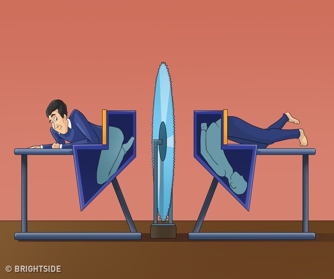 Το κλασικό κόλπο του Κόπερφιλντ, δεν θα μπορούσε να γίνει χωρίς βοήθεια (ή χωρίς να κοπεί πραγματικά στα δύο ο «μάγος»). Την ώρα της προετοιμασίας, ο μάγος τραβάει τα πόδια του και σχεδόν αμέσως ο βοηθός βγάζει τα δικά του.