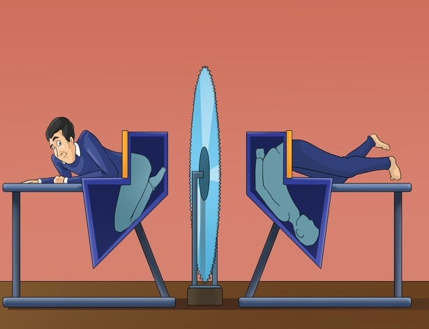 Το κλασικό κόλπο του Κόπερφιλντ, δεν θα μπορούσε να γίνει χωρίς βοήθεια (ή χωρίς να κοπεί πραγματικά στα δύο ο «μάγος»). Την ώρα της προετοιμασίας, ο μάγος τραβάει τα πόδια του και σχεδόν αμέσως ο βοηθός βγάζει τα δικά του.