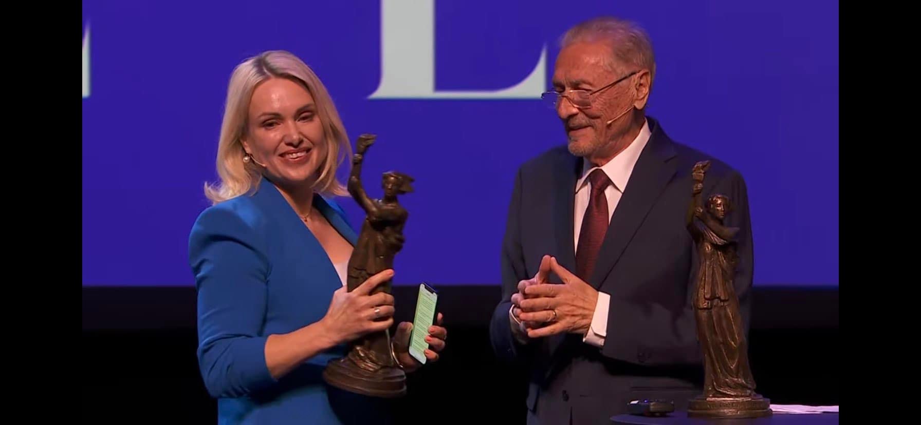 Marina Ovsyannikova was awarded the Vaclav Havel Prize of the Council of #Europe in the field of human rights for her anti-war action on the First Channel. She received an award as part of the Freedom Forum in #Oslo. pic.twitter.com/WHnowaqt4C