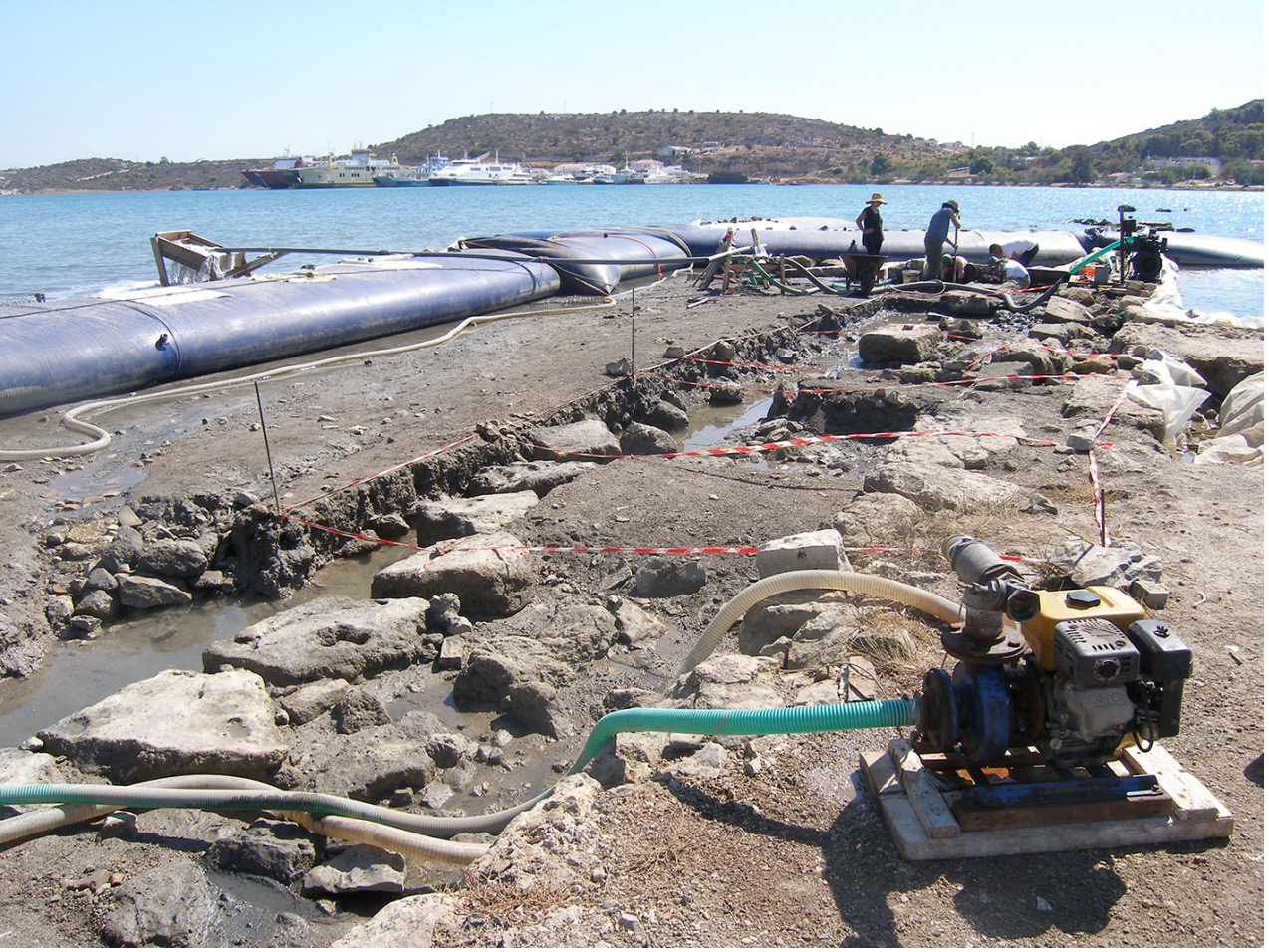 Συγκεκριμένα, συνεχίσθηκε η ανασκαφική διερεύνηση ενός μεγάλου σκέλους, εν μέρει καταβυθισμένου, του επιθαλάσσιου τείχους της Κλασικής πόλης, με κατεύθυνση Β.-Ν. Η διερεύνησή του, βάσει κανάβου με τετράγωνα 4 x 4 μ., πραγματοποιήθηκε, και πάλι επιτυχώς, με την εφαρμογή «αμφίβιας» ανασκαφικής διαδικασίας, η οποία συνδυάζει μέσα και τεχνικές της χερσαίας και υποβρύχιας Αρχαιολογίας, με την εγκατάσταση εύκαμπτου υδατοφράκτη και την χρησιμοποίηση 3 υδραντλιών, για την καθημερινή αφυδάτωση θαλασσίου πεδίου συνολικής εκτάσεως 140 μ2.