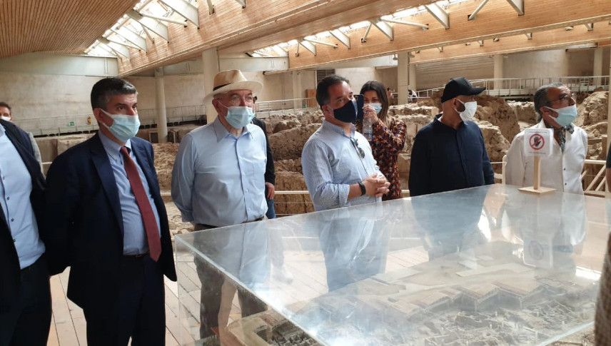 Σε δήλωσή του μετά την επίσκεψη της σαουδαραβικής επιχειρηματικής αποστολής, της οποίας ηγείται ο υπουργός Επενδύσεων της Σαουδικής Αραβίας και τη συνοδεύουν 8 υφυπουργοί, στον αρχαιολογικό χώρο του Ακρωτηρίου και στα Φηρά και την Καλδέρα, ο Άδωνις Γεωργιάδης έκανε λόγο για αμοιβαία επωφελή οικονομική συνεργασία. Αναφερόμενος στους τομείς συνεργασίας, εστίασε στις ανανεώσιμες πηγές ενέργειας, τον τουρισμό, τη γεωργία, την περιβαλλοντική πολιτική, την ψηφιοποίηση, ναυτιλία. Σημείωσε πως μερικές επενδύσεις έχουν ήδη αρχίσει από την επίσκεψη της ελληνικής επιχειρηματικής αποστολής στη Σαουδική Αραβία, της οποίας ηγήθηκε ο ίδιος τον Μάρτιο και προσέθεσε πως μερικές επιχειρήσεις θα συνεχίσουν την προσπάθεια τους στην Αθήνα και άλλες θα ακολουθήσουν, έτσι ώστε να επιταχυνθεί η διαδικασία επανοικοδόμησης της διμερούς σχέσης.