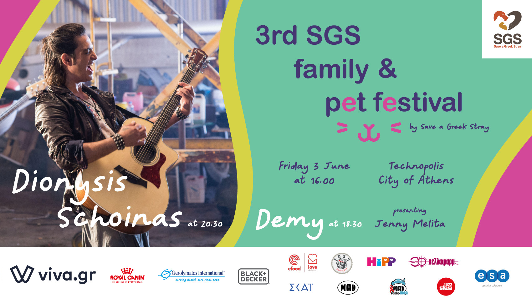 Για 3η χρόνια η Save a Greek Stray (SGS) ανακοινώνει το SGS Family and Pet Festival που θα διοργανωθεί την Παρασκευή, 3 Ιουνίου 2022, στον χώρο της Τεχνόπολης Δήμου Αθηναίων, με στόχο την ευαισθητοποίηση και ενημέρωση όλων σχετικά με τα δικαιώματα των ζώων. Η είσοδος θα είναι ελεύθερη, ενώ ευπρόσδεκτοι είναι φυσικά και οι τετράποδοι φίλοι του κοινού.