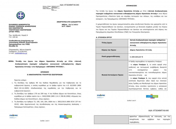 Ηράκλειο Αττικής: Χρηματοδοτήθηκε ο Δήμος για έργα αστικής αναβάθμισης