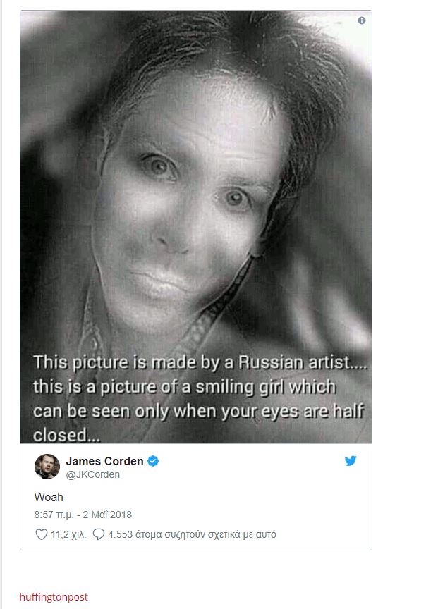 Σε ό,τι αφορά τώρα τη φωτογραφία, αυτή δημιουργήθηκε από έναν ρώσο καλλιτέχνη και εάν κάποιος έχει τα μάτια του μισόκλειστα θα πάψει να βλέπει τον άνδρα που απεικονίζεται σε αυτή και θα δει ένα κορίτσι που του χαμογελάει.