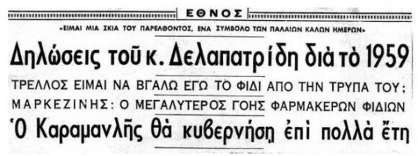 Ο εθνάρχης ήρθε δεύτερος όταν το 1989 είπε ότι η Ελλάδα είναι ένα απέραντο φρενοκομείο. Πρώτος είχε κάνει λόγο ο Δελαπατρίδης.