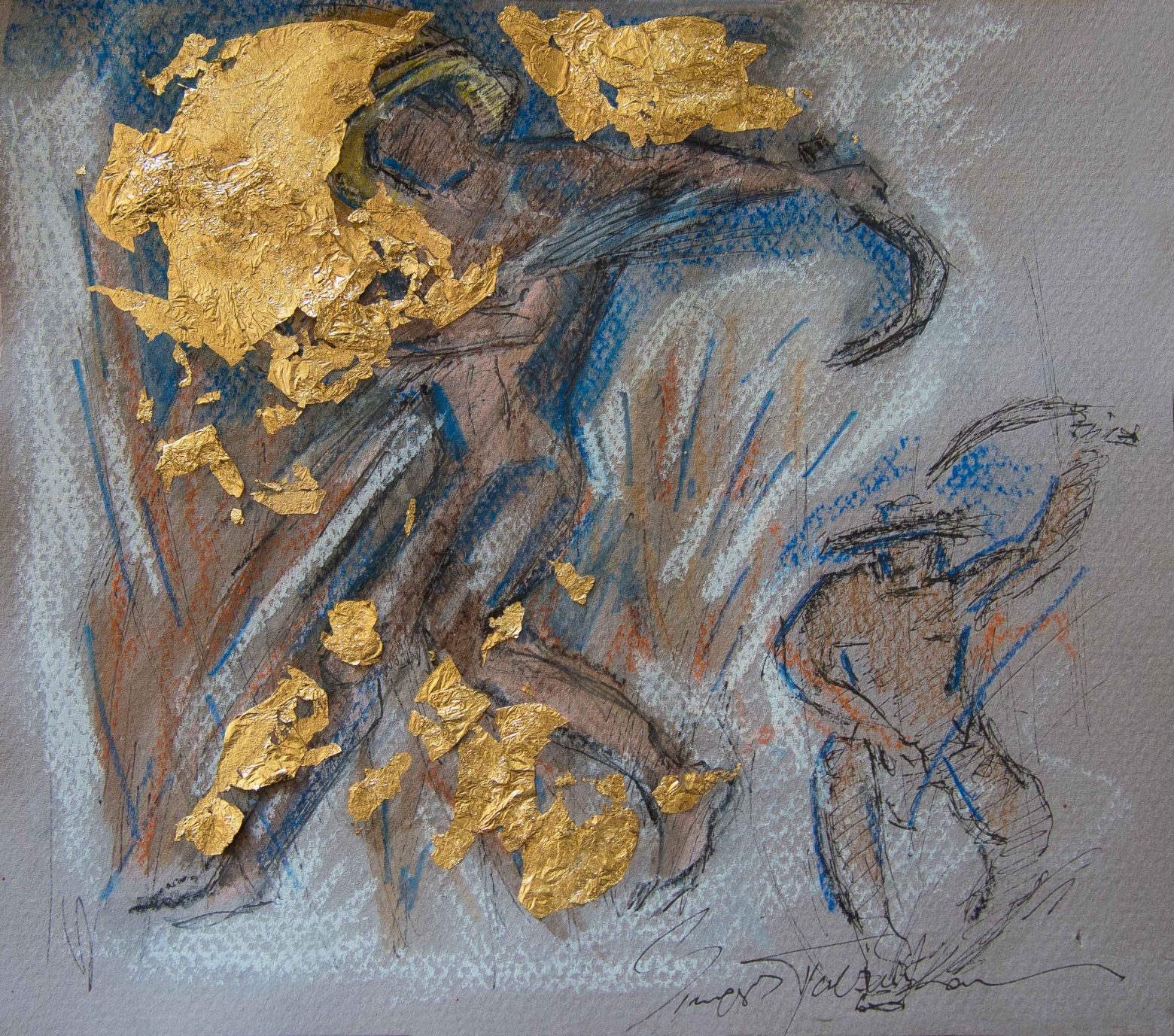 Η ανάγκη όμως για επιβίωση κρατά όρθιους τους ακμαίους θεριστές έτσι όπου η μορφή τους εξαϋλώνεται και σε μερικούς πίνακες φαντάζει σαν την ψυχή τους που συνεχίζει επίμονη τον αγώνα του θερισμού. Ο θερισμός και η συλλογή των καρπών πάνω στο μέτωπο της γης είναι ζήτημα ζωής και θανάτου και τίποτα δεν μπορεί να διακόψει αυτή την μυσταγωγία που μοιάζει με προαιώνιο θηλασμό της ανθρωπότητας…»