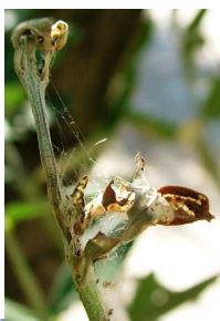 Οι προνύμφες του εντόμου προκαλούν ζημιές στις κορυφές και τα φύλλα των τρυφερών βλαστών. Σε φυτώρια, νεαρά δέντρα και σ’ αυτά που έχει γίνει κλάδεμα ανανέωσης η επέμβαση κρίνεται απαραίτητη.