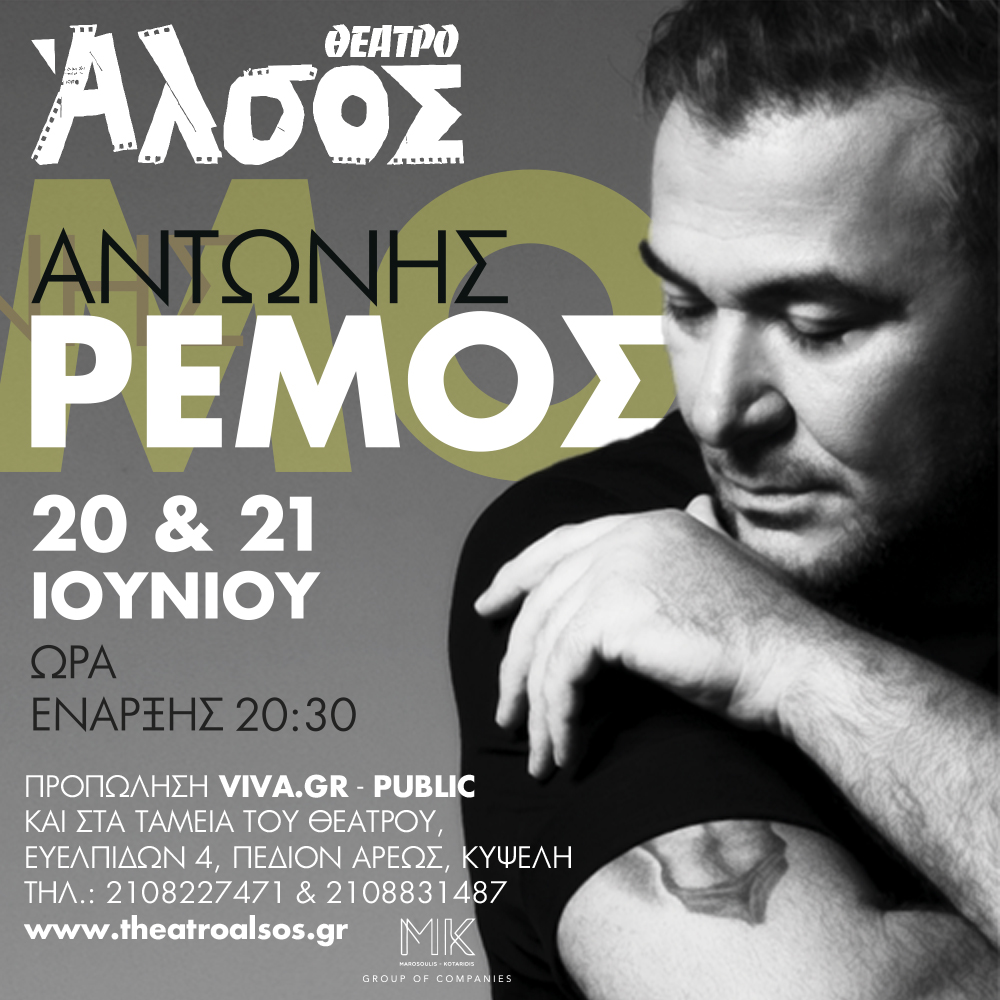 Ο Αντώνης Ρέμος για πρώτη φορά στο Θέατρο Άλσος, στο ωραιότερο καλοκαιρινό θέατρο της Αθήνα, μέσα στα δέντρα του Πεδίου του Άρεως με φόντο τον λόφο του Λυκαβηττού!