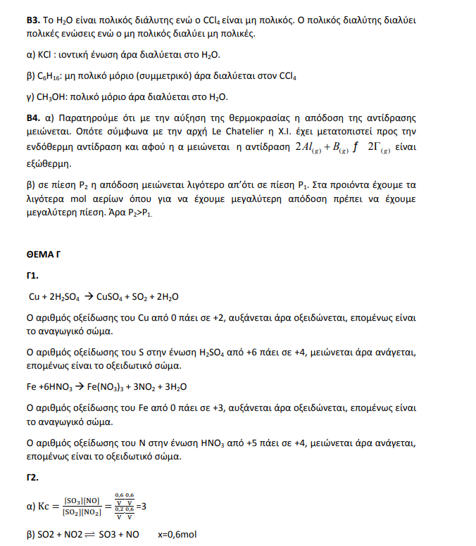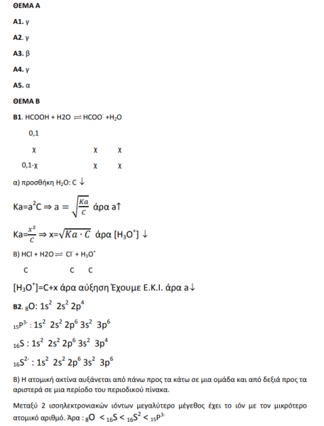 Σε ό,τι αφορά τα θέματα της Χημείας στο σύνολο τους χαρακτηρίζονται ως μέτριας δυσκολίας. Το Α Θέμα συγκεκριμένα ελέγχει βασικές γνώσεις. Το Β Θέμα έχει αρκετά ερωτήματα και απαιτεί χρόνο είναι όμως μέτριας δυσκολίας.