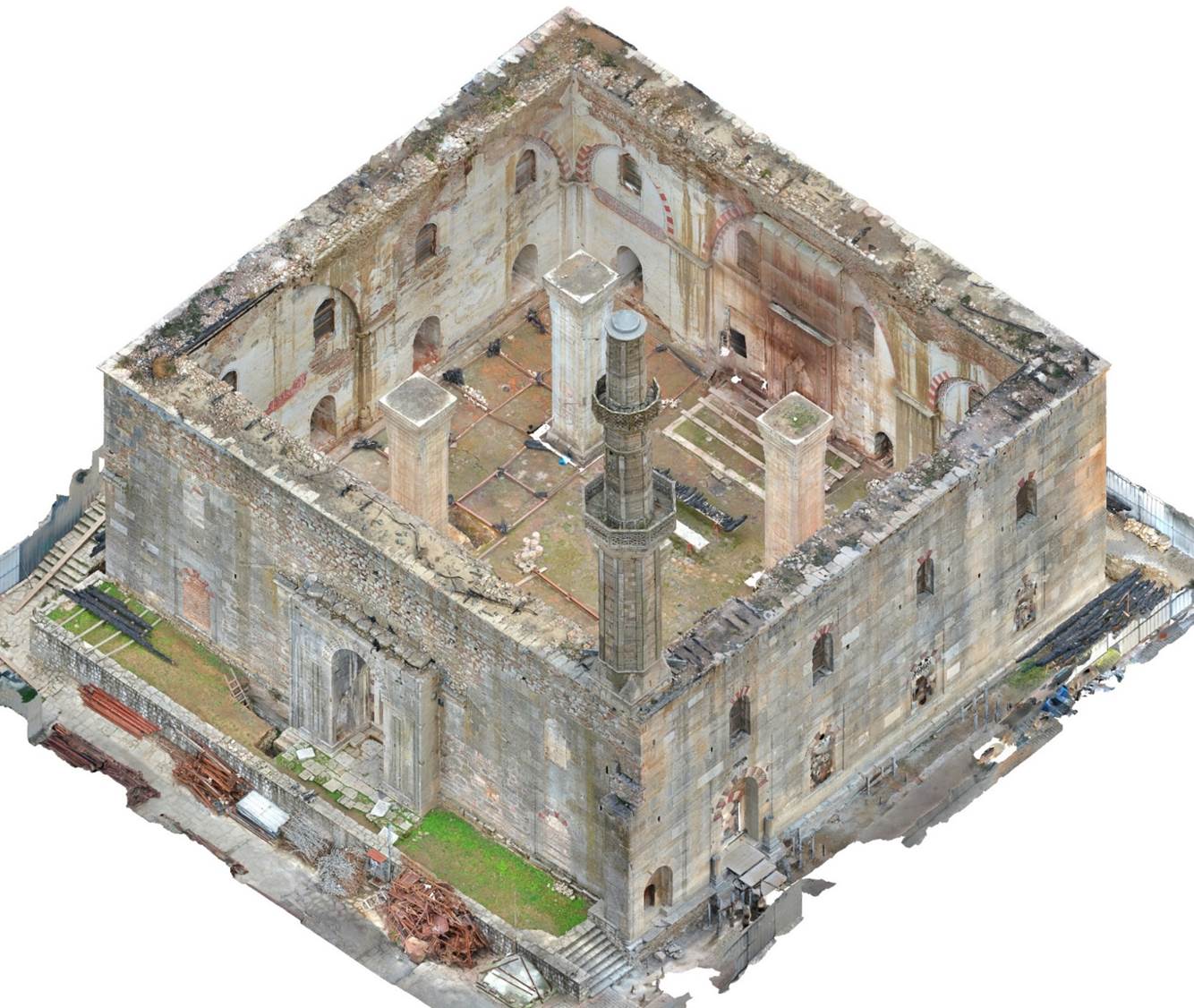 πραγματοποιήθηκε γεωμετρική και αρχιτεκτονική αποτύπωση της υφιστάμενης κατάστασης του μνημείου, και του μιναρέ του.