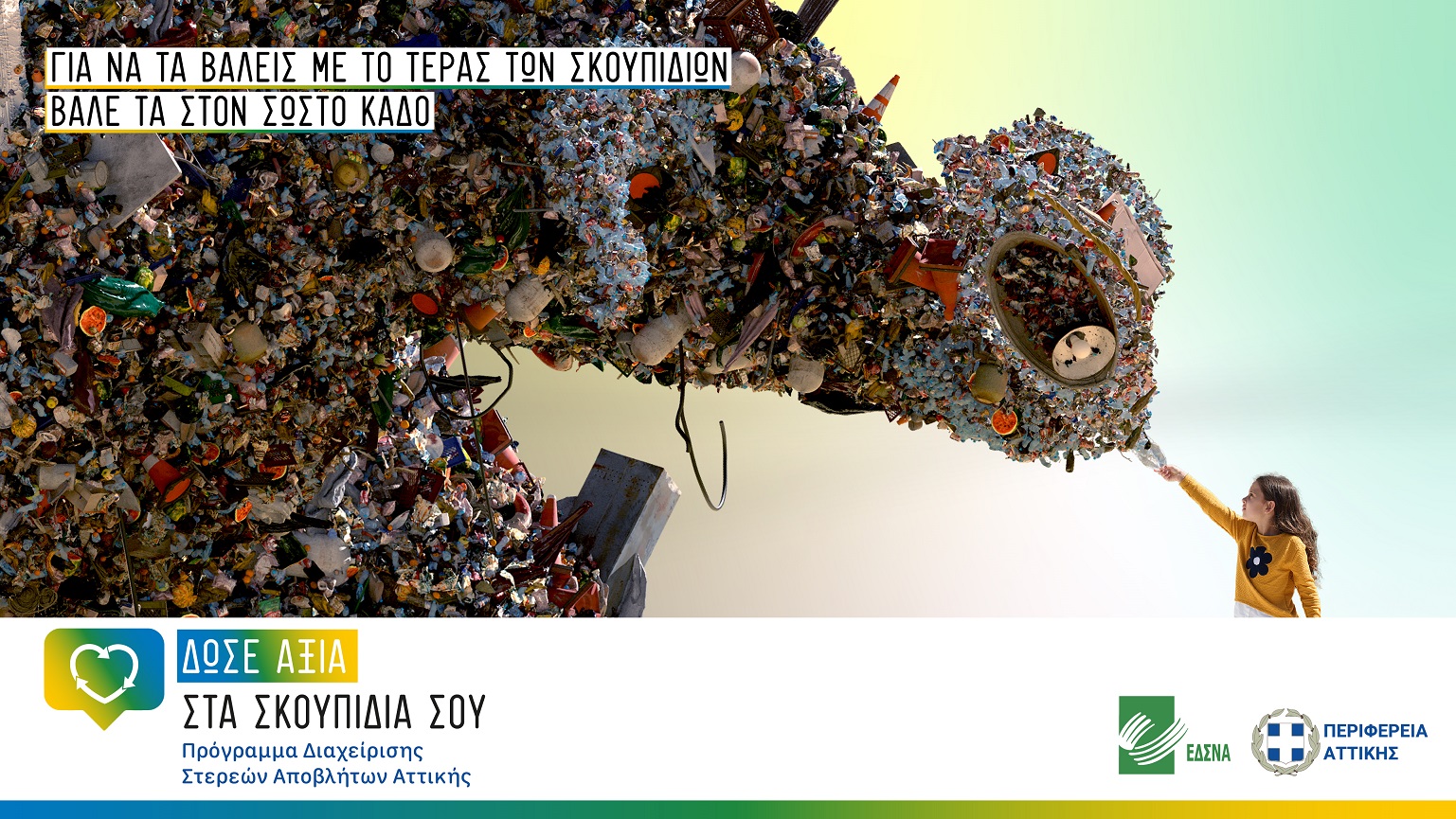 Αυτό το τέρας και την εξέλιξη του αναδεικνύει με ένα συμβολικό τρόπο, η νέα καμπάνια ευαισθητοποίησης των πολιτών για τη σωστή διαχείριση των στερεών αποβλήτων, που σχεδιάστηκε για λογαριασμό του Ειδικού Διαβαθμιδικού Συνδέσμου Νομού Αττικής (ΕΔΣΝΑ) και την Περιφέρεια Αττικής.