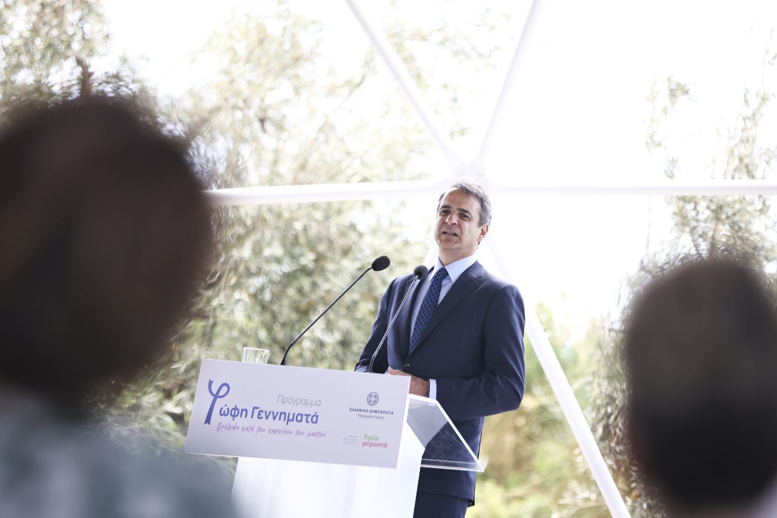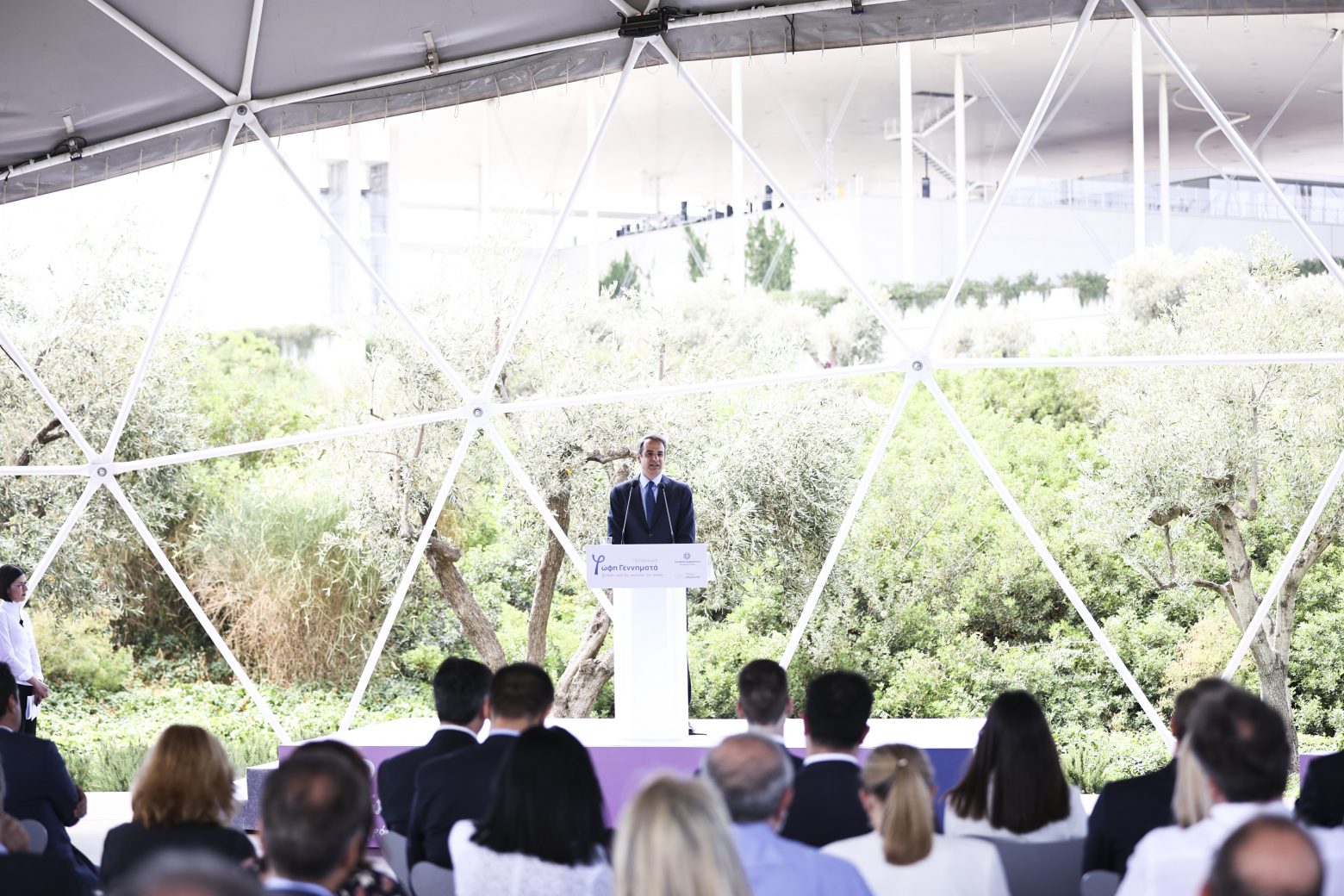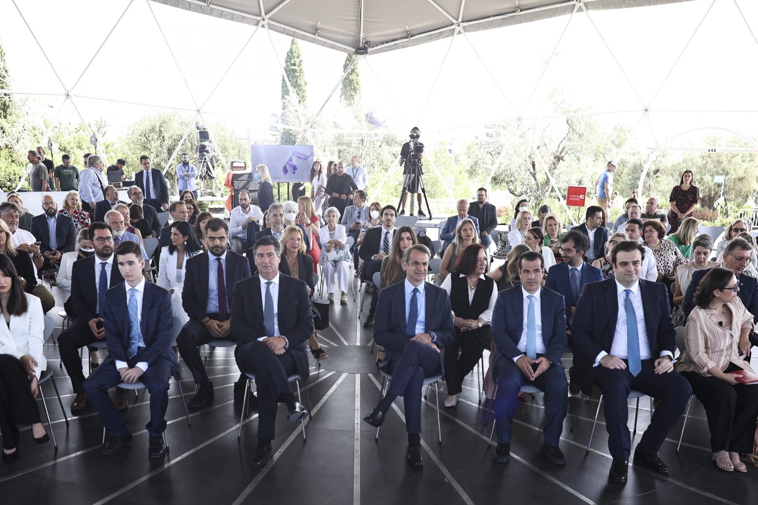 Μετά την ομιλία του ο κ. Μητσοτάκης απένειμε το βραβείο Εταιρικής και Κοινωνικής Ευθύνης, στις κυρίες Ιουλία και Ειρήνη Τσέτη για τις κοινωνικές δράσεις της εταιρείας τους Uni-Pharma.