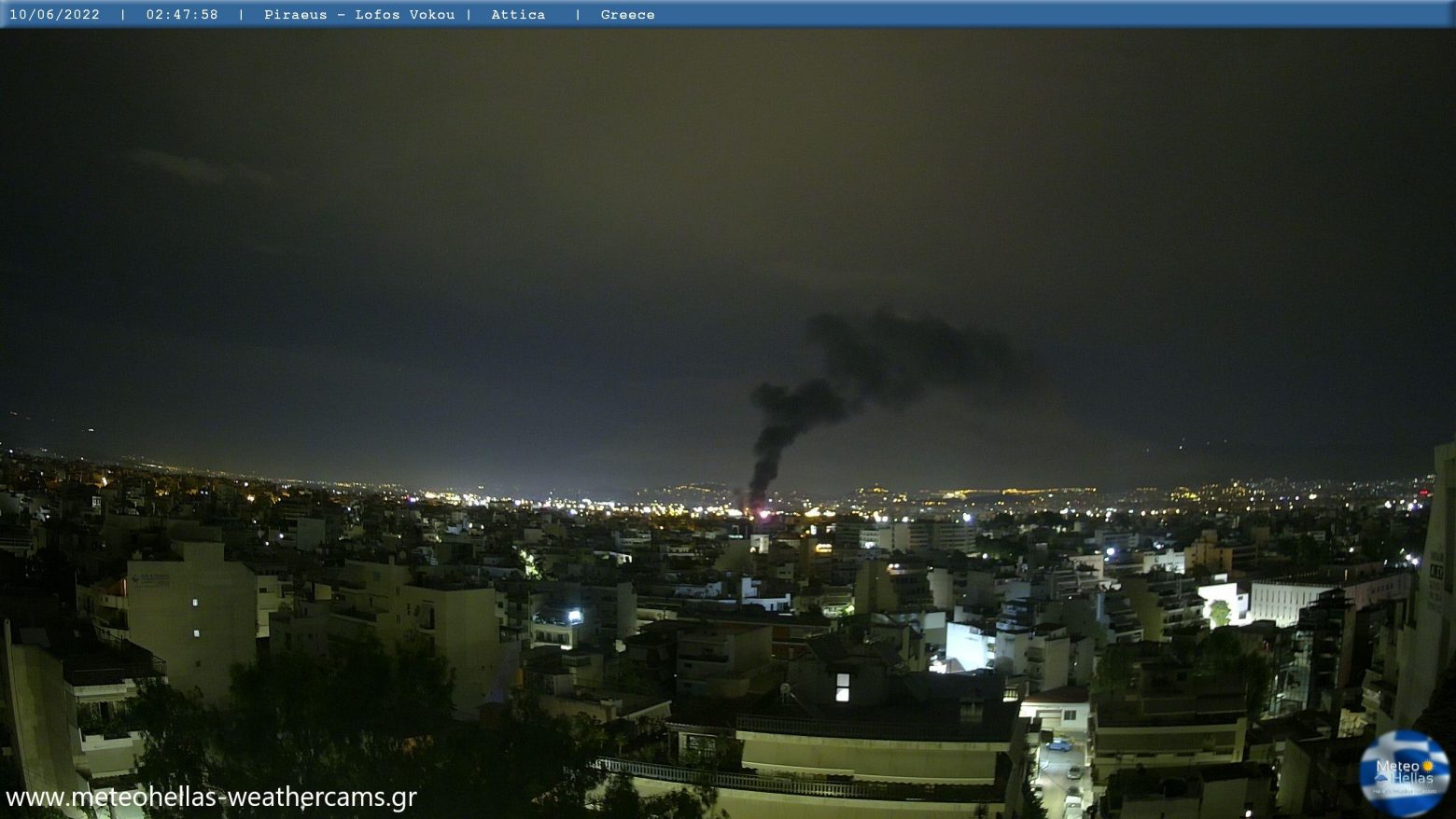 Όπως φαίνεται στη φωτογραφία από την κάμερα Πειραιά – Λόφος Βώκου του Meteohellas Weathercams φαίνεται μαύρος πυκνός καπνός.