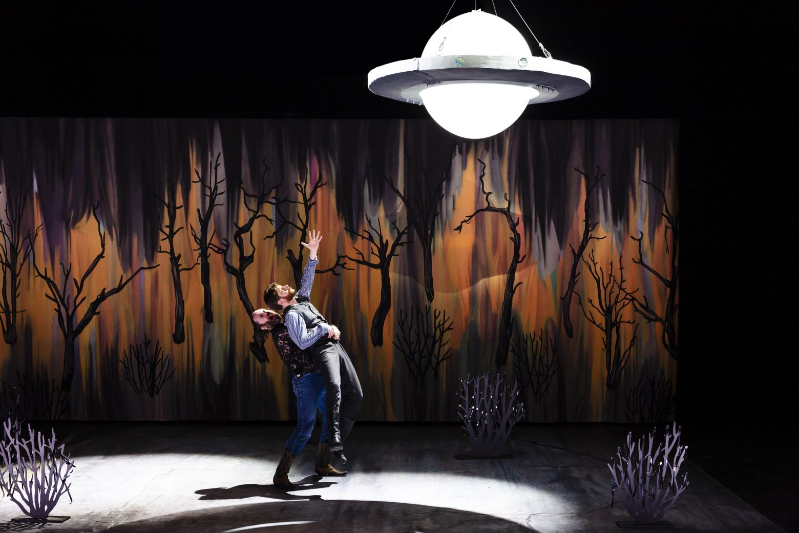 Όμως πρόκειται για όπερα, και το δράμα δεν σταματά εδώ. Ακολουθεί μια κατακλυσμιαία καταιγίδα, μια εγκυμοσύνη, ένας φόνος, ένα ερωτικό τρίγωνο, μια εικονική εκτέλεση, μια γέννα, μια εξωγήινη εισβολή και απαγωγή, και… ένα τέλος που δεν θα αποκαλύψουμε εδώ!