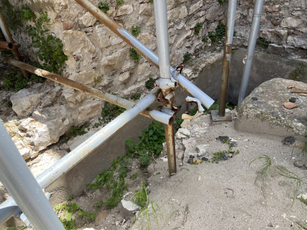 Η έδραση των υποστυλωμάτων επί του εδάφους παρουσιάζει πρόβλημα, αφού κάποια εξ αυτών λόγω στων συστοδιαστολών της κατασκευής που είναι εκτεθειμένη, βρίσκονται στον αέρα.