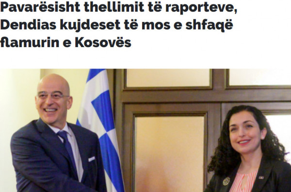 «Παρά την εμβάθυνση των σχέσεων, ο Δένδιας φροντίζει να μην εμφανίζει τη σημαία του Κοσόβου» είναι ο τίτλος του κοσοβάρικου δημοσιεύματος