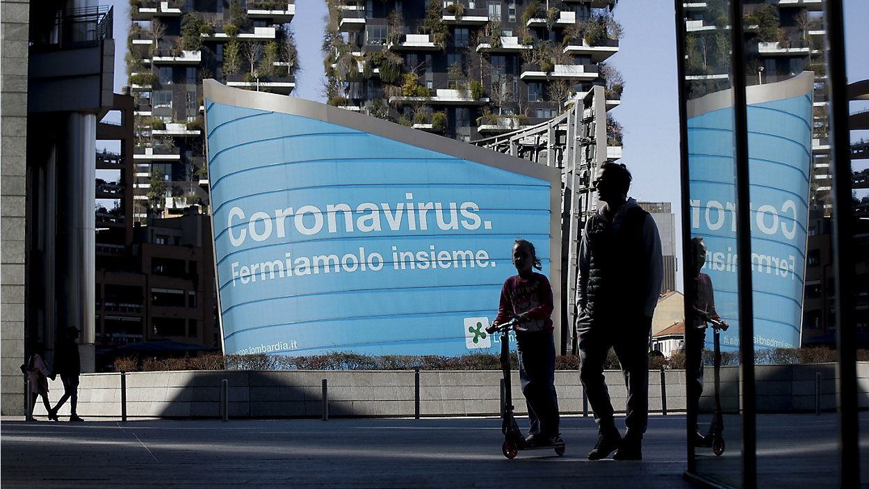 Ο δείκτης των εβδομαδιαίων μολύνσεων Covid-19 στην Ιταλία παρουσίασε ξανά αύξηση ύστερα από πολύ καιρό, σύμφωνα με στοιχεία που έδωσε χθες Παρασκευή στη δημοσιότητα το Εθνικό Ινστιτούτο Υγείας της χώρας («Κοροναϊός. Να τον σταματήσουμε μαζί», γράφει η διαφημιστική πινακίδα σε επιχειρηματικό προάστιο του Μιλάνου – φωτογραφία αρχείου από το AP/Luca Bruno).