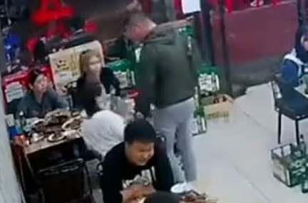 Ολα ξεκίνησαν, όταν ο άνδρας τοποθέτησε το χέρι του στην πλάτη της γυναίκας και εκείνη τότε τον άρπαξε από τον καρπό για να τον απομακρύνει. Πέρασαν λίγα δευτερόλεπτα και ο άνδρας επιχείρησε να παρενοχλήσει ξανά τη γυναίκα, παρά τις αντιδράσεις της. Όταν τον απώθησε ξανά, δέχθηκε χτύπημα στο πρόσωπο.