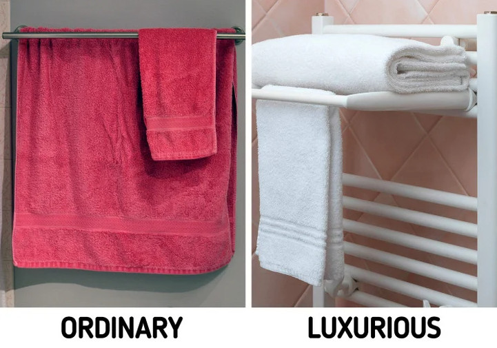 Οι χρωματιστές πετσέτες με αστεία σχέδια μπορεί να φαίνονται χαριτωμένες, αλλά αν θέλετε να δώσετε στο μπάνιο σας λίγη κομψότητα, απλώς αντικαταστήστε τις με λευκές. Ανεξάρτητα από τα χρώματα που είναι στο μπάνιο σας, το λευκό θα ταιριάζει με οτιδήποτε.